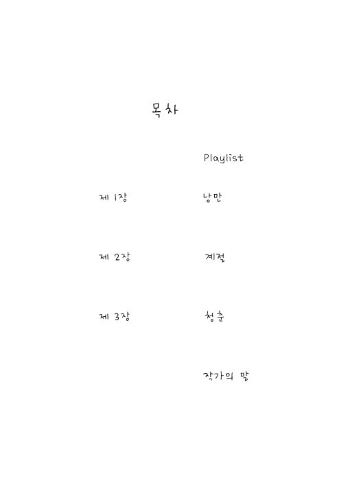 작가님! 책 정말 잘 읽었어요..!! 그런데 플레이리스트에 적힌 것 중에서 달담의 파도혁명이라 적혀있는데, 음율의 파도혁명인것 같아요! 모 어쨌든 책 잘 읽었습니다!! 글 정말 잘쓰시네요, 부럽습니다(((o(*゚∀゚*)o)))