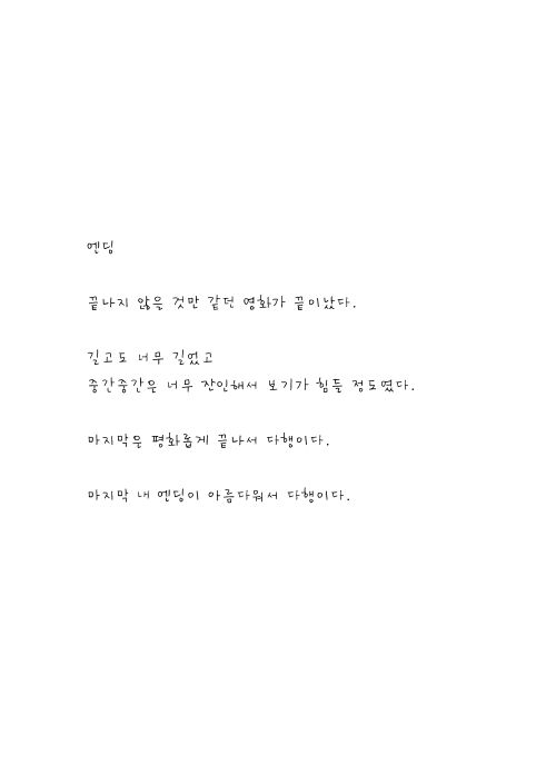 부적절한 내용이 포함된 감상평을 신고할 수 있습니다. 다수가 신고한 감상평은 블라인드 처리됩니다.