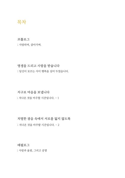 사랑을 씨앗에 비유하며 부모와 자녀 사이의 감정을 꽃말로 풀어낸 에세이. 스물한 살의 딸이 결혼기념일에 쓴 편지를 중심으로, 헌신·순박함의 씀바귀와 쾌활·명랑의 유채가 함께 피워낸 가족의 공명을 담았다.